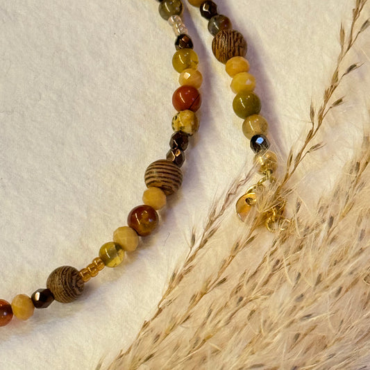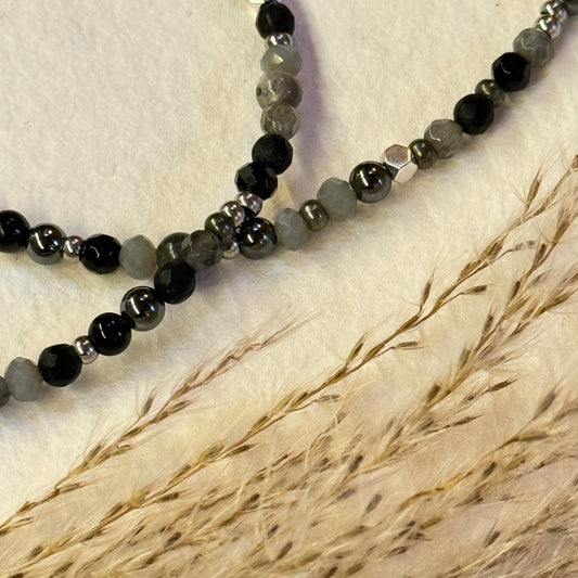 Découvrez ma collection de bracelets doubles, qui se portent aussi bien en collier qu'en bracelet. Fabriqués à partir de pierres semi-précieuses soigneusement sélectionnées, ces pièces uniques allient élégance et simplicité. Chaque bracelet est agrémenté de quelques perles subtiles, ajoutant une touche raffinée sans alourdir le design. Parfait pour un look sobre et sophistiqué, ce bijou versatile s'adapte à toutes les occasions et styles. Un choix idéal pour ceux qui recherchent une pièce intemporelle et moderne.