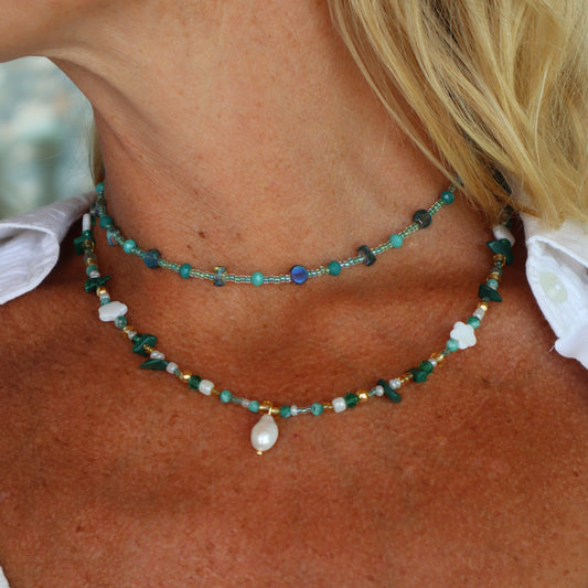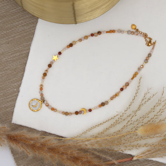 Chaque bijou de ma collection est soigneusement confectionné à la main, avec une attention particulière portée aux détails et aux matériaux. Je sélectionne des pierres semi-précieuses telles que la pierre de lune, la pierre de soleil, l'agate, l'hématite, et les perles d'eau douce pour créer des pièces qui allient élégance et authenticité.
